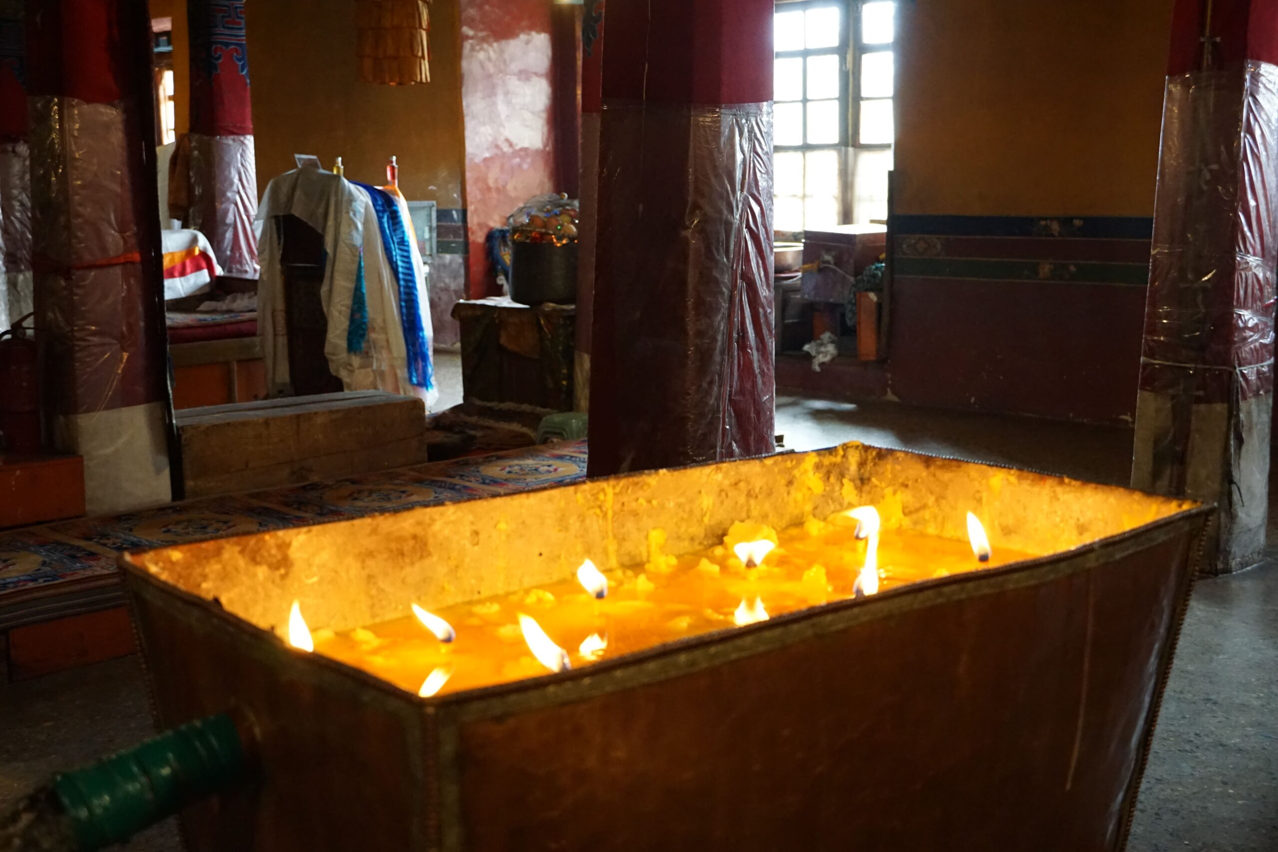 Et si la splendeur architecturale de ce patrimoine culturel en témoigne à elle seule, c’est dans les détails que j’en saisis pleinement le sens : le parfum capiteux, voire oppressant des chandelles au beurre de yak et de l’encens, les somptueux tapis baignés dans les rayons du soleil, les milliers d’offrandes laissées dans les chapelles aux effigies des différents bouddha.