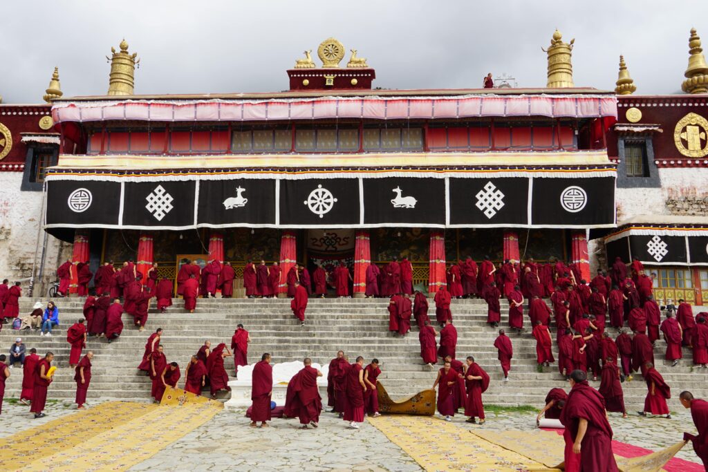 Sa fondation remonte à 1416, au temps où plus de 10 000 fidèles le fréquentait. Depuis l’invasion chinoise de 1950, ils ne sont plus que 1000.