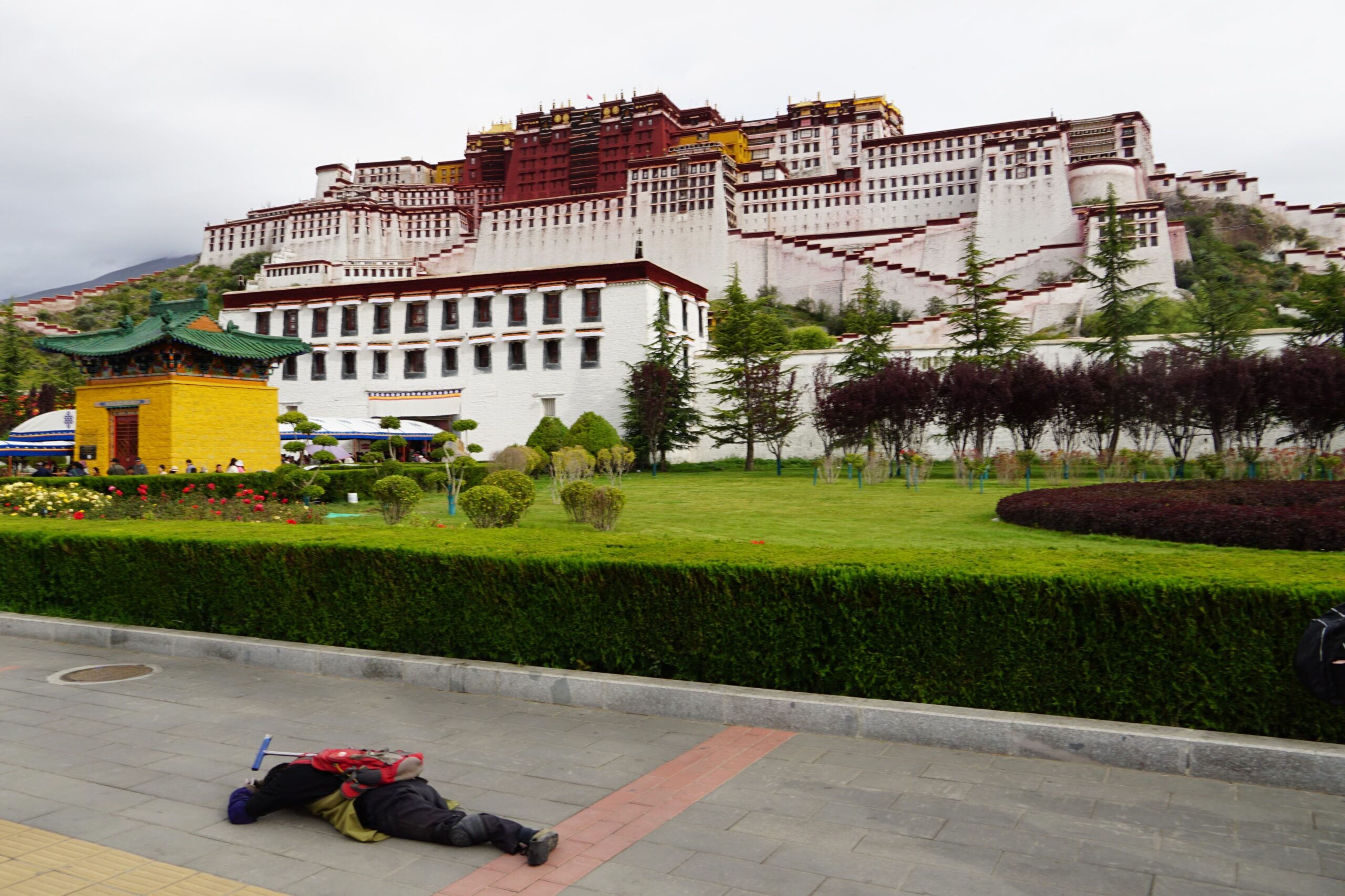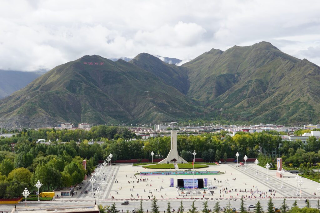 À la sortie, je remarque une imposante obélisque érigée au milieu d’une place publique, savamment alignée face au palais Potala.