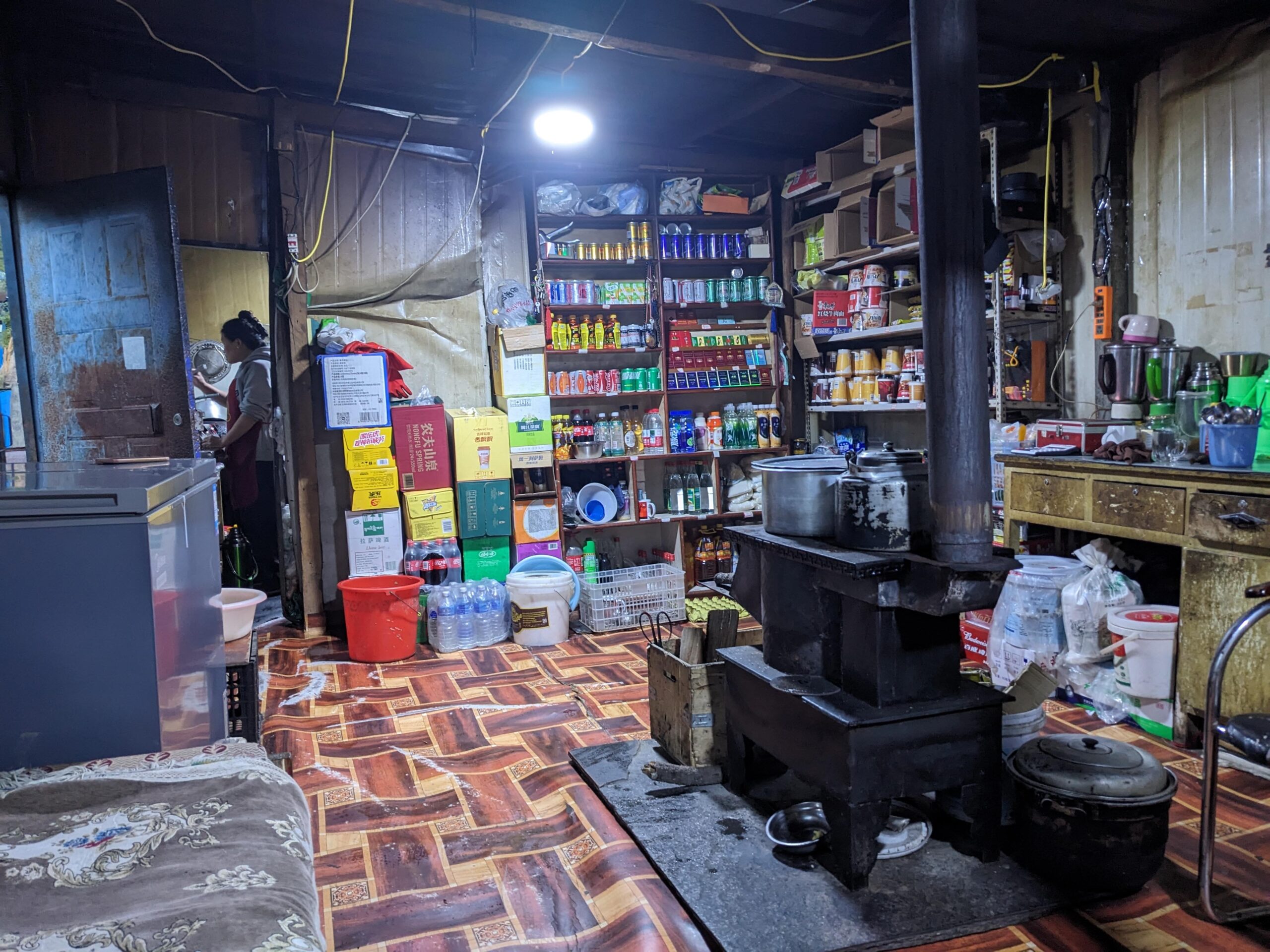 De l’autre côté du barrage, Dorje s’arrête devant une minuscule baraque en bois. Je parierais que sa construction prédate la création de la route.