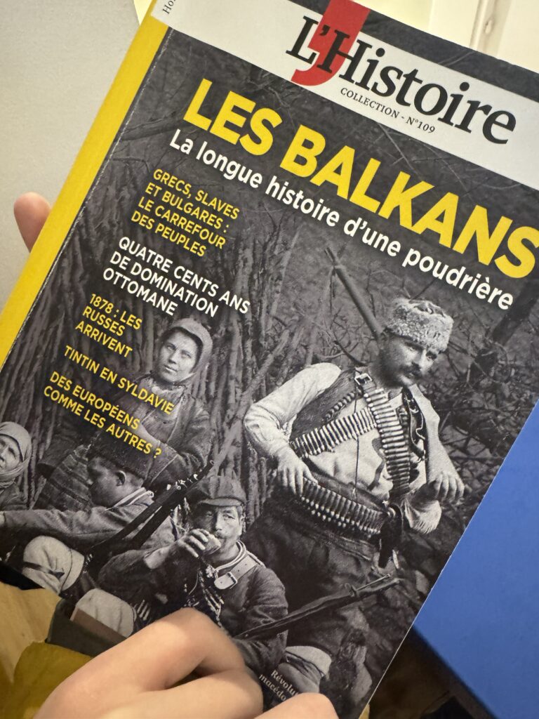 La lumière du café où nous nous sommes réfugiés est douce. Julien a le nez plongé dans le numéro 109 du magazine L’Histoire. La page couverture est éclaboussée de grands titres sensationnalistes : Les Balkans, des Européens comme les autres ?